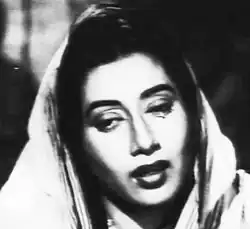 She sustained her career in Bengali cinema also with films such as Abhijog (1947), Pather Dabi (1947), Pratibad (1948), Joyjatra (1948), Swami (1949), Devi Chowdhurani (1949), Samar (1950), Dasyu Mohan (1955).[9] She has been idolized for her role as the beautiful alcoholic wife of a landlord in Kartik Chattopadhyay's cult classic Saheb Bibi Golam (1956) which is an adaptation of Bimal Mitra's classic novel of the same name.[11][12] Her portrayal of Bijali, a nautch girl with a bereaved heart in Haridas Bhattacharya’s National Award winning Bengali film Aandhare Alo (1957) acquired an overwhelmed critical response.[13][11] She also garnered acclamation for her roles in Bengali films such as Ekdin Ratre (1956), Nilachaley Mahaprabhu (1957), Joutuk (1958) and Kinu Gowalar Gali (1964).[11][6] In the late fifties, she was invited to the Asian Film Festival in China as a delegate from India.[11]