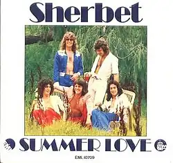 ![]() The single cover of "Summer Love", featuring the Sherbet members. Front row (from left): Tony Mitchell, Daryl Braithwaite, Clive Shakespeare; back row: Garth Porter, Alan Sandow | ||||