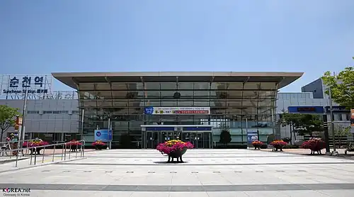 Suncheon station is a railway station in South Korea. It is on the Gyeongjeon Line and the Jeolla Line.
