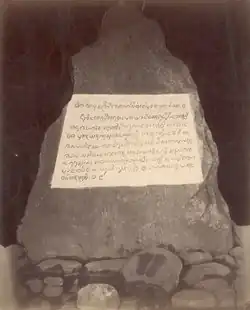 Another reference to the kingdom is the Jayabupati inscription which consists of 40 lines written on four pieces of stone, found on the Cicatih river bank in Cibadak, Sukabumi. This inscription is again written in Kawi script, and mentions the establishment of a protected sacred area called Sanghyang Tapak by the King Jayabhupati of Sunda. The inscription is dated to 1030 CE.