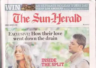 The Sun-Herald is an Australian newspaper published in tabloid or compact format on Sundays in Sydney by Nine Entertainment. It is the Sunday counterpart of the Sydney Morning Herald. In the six months to September 2005, The Sun-Herald had a circulation of 515,000. According to the Audit Bureau of Circulations, its circulation had dropped to 443,257 as of December 2009[1] and to 313,477 as of December 2010, from which its management inferred a readership of 868,000.[2] Readership continued to tumble to 264,434 by the end of 2013, and has half the circulation of rival The Sunday Telegraph.[3]