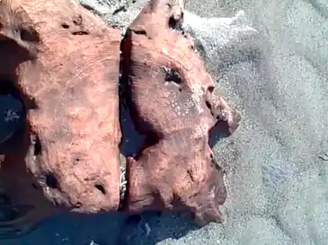 The sunken forest near Jenness Beach (and Jenness State Beach) in Rye is rarely sighted above sea level—recorded sightings have occurred in 1940, 1958, 1962, 1978,[2] and 2010.[1] Newspaper reports of other sightings include a 1931 investigation by a professor from Dartmouth College who identified the stumps as "swamp cedar".[3] The trees, 8 to 10 feet (2.4 to 3.0 m) in circumference, have been carbon dated from 3,400 to 3,800 years old, and growth rings indicate they lived for more than 100 years.[2] While the forest may have been vast, as of the 1978 sighting only 56 stumps remained.[2]