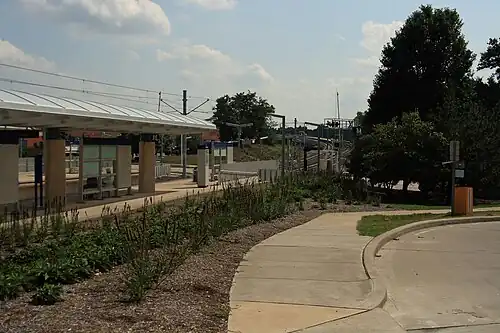 Sunnen station is a light rail station on the Blue Line of the St. Louis MetroLink system.[3] This at-grade station is located on Sunnen Drive adjacent to the only level crossing on the Cross County alignment. It is the least used station on the MetroLink system.[4]