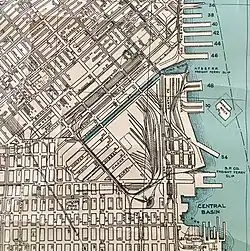 China Basin is a neighborhood built on landfill along the San Francisco Bay. It lies north of Mission Creek and the Mission Bay neighborhood, and includes Oracle Park, home of the San Francisco Giants, numerous restaurants, and the Caltrain railroad station. It borders on the South-of-Market (SOMA) neighborhood to the northwest and the South Beach neighborhood to the north. The term China Basin also refers to the body of water from which the neighborhood takes its name. This inlet where Mission Creek flows into the bay, home to a number of houseboats, was once an active industrial waterfront, though in recent decades the shore has been developed with residential condominiums. The portion of the waterway adjacent to the ballpark is often referred to as McCovey Cove, named after Willie McCovey of the San Francisco Giants. The China Basin Heliport (IATA code JCC), used by the SFPD Aero Division until the division was disbanded, was located near the waterfront in the neighborhood.[8]