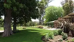 Sunnyside County Club traces its origins back to one of the early vineyards of Fresno County. In 1890, the land on which the club currently sits was purchased by William N. Oothout from Frederick Roeding, creating the Sunnyside Vineyard.[2] By 1911, a group of wealthy and well-known Fresnans, including George C. Roeding, C.C. Teague and Frank Romain, bought a portion of the old Sunnyside Vineyard and Oothout’s colonial home to build a golf course for the club.[2] The men hired Bell to design the golf course, which was completed in 1911. Oothout's colonial home was used at the clubhouse, until it was destroyed by fire in 1941.