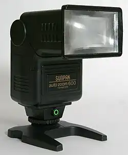 Sunpak was a popular brand of auto-thyristor flashes in the 1970s and 1980s.[2] Along with on-camera and handle-mounted "potato masher" flashes, the company produced various flash accessories as well as a waterproof flash.[3]