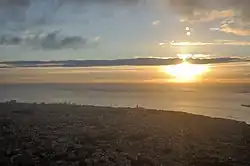 Sunrise (or sunup) is the moment when the upper rim of the Sun appears on the horizon in the morning,[1] at the start of the Sun path. The term can also refer to the entire process of the solar disk crossing the horizon.