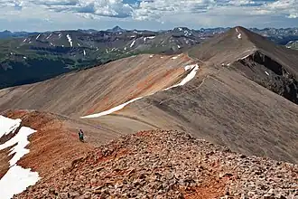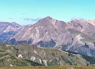 ![]() Sunshine Peak (upper right corner) seen from Redcloud Peak | |