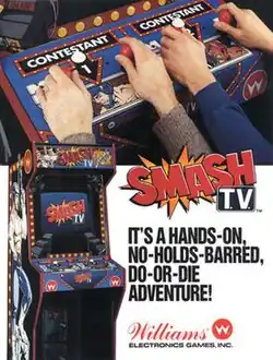 Smash TV is a 1990 twin-stick shooter video game developed and published by Williams Electronics for arcades. It was designed by Eugene Jarvis, with similar gameplay to Jarvis' Robotron: 2084. The Super Nintendo Entertainment System, Genesis, Master System, and Game Gear versions are titled Super Smash TV.