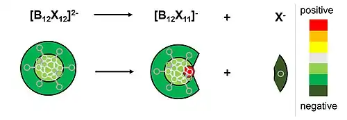 - ^ a b Warneke, Jonas; Dülcks, Thomas; Knapp, Carsten; Gabel, Detlef (2011-03-16). "Collision-induced gas-phase reactions of perhalogenated closo-dodecaborate clusters – a comparative study". Physical Chemistry Chemical Physics. 13 (13): 5712–5721. Bibcode:2011PCCP...13.5712W. doi:10.1039/C0CP02386H. ISSN 1463-9084. PMID 21311775.