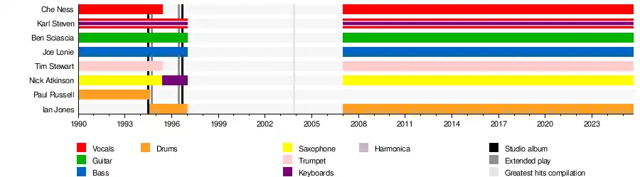 - Nick Atkinson – saxophone (1989–1997, 2007-present), keyboards (1995–1997)[16]