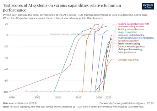 - Rapid progress – The pace of AI advancement has led some to argue that we may be closer to ASI than previously thought, with potential implications for existential risk.[59]