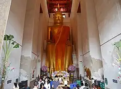 Suphan Buri might be the site of the legendary Suvarnabhumi, which is mentioned in very old Buddhist writings.[9] However the first confirmed historical settlement was in the Dvaravati period, when the city was known as Mueang Thawarawadi Si Suphannaphumi ('the Dvaravati city of Suvarnabhumi').[10] Its founding took place c. 877–882. In the era of Angkorian king Jayavarman VII, an inscription called Prasat Phra Khan (จารึกปราสาทพระขรรค์) was made which mentions the name of Suvarnapura.[11] Later it was called U Thong, and was once believed to be the home city of Prince U Thong, the founder of the Ayutthaya Kingdom. King Khun Luang Pha Ngua gave it the current name. Suphan Buri was a border city, and the site of several battles with the neighbouring Burmese.