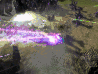 Supreme Commander also supports unit formations. A selected group of units can be ordered to assume a formation the shape of which can be controlled by the player. Holding control while issuing a move order will cause a group of units to move in formation. Units in formation are intelligently arranged so that the tankiest units are at the front, ranged units at the rear and with shield and intel units spaced equally throughout.