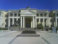 The Supreme Court is located in a five-storey reinforced concrete structure of 183,000 square feet (17,000 m2) which includes both civil and criminal courts, together with office accommodation and facilities for judges, juries, attorneys, prisoners, and the public, as well as the Registry and Records offices.[5]