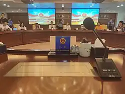 In addition to the Prosecutor-General, the Supreme People's Procuratorate is also composed of multiple Deputy Prosecutors-General, members of the Procuratorial Committee and additional procurators.[5][30] All other members of the Procuratorate are appointed by the Standing Committee of the National People's Congress[30] at the Prosecutor-General's recommendation.[5] Likewise, members may be removed from the Procuratorate at the will of the People's Congress and the Prosecutor-General.[30] The current Deputy Prosecutors-General of the Supreme People's Procuratorate are Tong Jianming,[9] Sun Qian,[31] Zhang Xueqiao,[32] Chen Guoqing[33] and Yang Chunlei.[34]