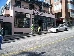 Sur La Table, Inc. (French: [syʁ la tabl] is a privately held retail company based in Seattle, Washington, that sells kitchenware including cookware, cutlery, cooks' tools, small electrics, tabletop and linens, bakeware, glassware and bar, housewares, food, and outdoor products. As of October 2018, Sur La Table sold products in 184 stores in 32 states across the United States, as well as through their website and catalogs. Cooking classes are available in over 80 stores.[1] Sur La Table has a blog, A Sharp Knife & Salt, that focuses on food, chefs, restaurants and products.[2] Many of the company's stores offer culinary classes[3] with plans to include a kitchen in every new store.[4] The company's corporate headquarters is located in Seattle's Georgetown neighborhood.