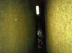 Once the flow is detected, the digging of the surangas is carried out by manual labourers or by the villages themselves with the help of improvised digging tools like pick axes and wedges.[5] The digging takes places mainly during the dry season, in between February and May, to prevent collapsing of wall due to presence of moisture in the soil.[8] The tunnels are generally rectangular or dome-shaped with an optimal height and width which allows a man to work and pass comfortably.[1]: 662 The tunnels are made with a downward slope to use the gravitational force for collection of the water percolating outside.[9] During construction, lining of walls is provided to prevent collapsing of wall due to loose or soft soil.[1]: 662 While an average suranga is 26 metres (85 ft) meters deep,[1]: 662 surangas up to 250 metres (820 ft) meters deep have also been recorded.[10] Air shafts are constructed in longer surangas to supply fresh air and to expel poisonous gases.[1]: 662