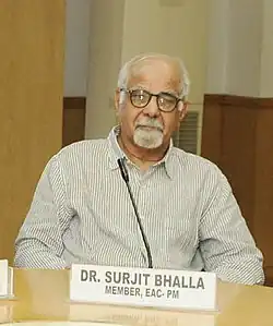 Surjit Bhalla is an Indian economist, author, and columnist who served as Executive Director for India at the International Monetary Fund (IMF). Bhalla has also been a member of the Economic Advisory Council to the second Modi government.