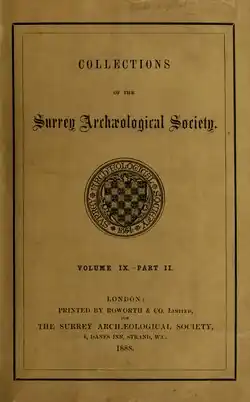 - Surrey Archaeological Society. "Surrey Archaeological Collections". Archaeological Data Service. doi:10.5284/1000221.