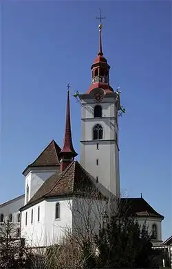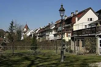 In the Roman era, there was a vicus just to the west of the town. In the 8th century, a wooden church was built around which the village gradually developed. The wooden church was replaced by stonework in c. 800, again rebuilt in c. 1000. An Alamannic cemetery and the remains of another early medieval church were excavated to the north-east of the town.