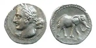 Although a Carthaginian coin struck in the time of Hannibal depicts a North African elephant, historians believe Surus was a Western Asiatic or Syrian elephant descended from those seized by the Ptolemies of Egypt in the Syrian Wars, as its name, "Surus", would translate as "The Syrian".[3] However, others have proposed it was a North African elephant like the rest of animals used by Carthage, interpreting the name as a nickname Romans would have given it for its broken tusk (surus or sudus being the name for a stake used in fortifications).[4]