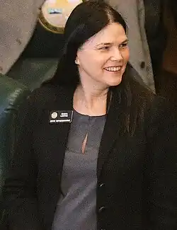 During her tenure in the state house she served on the Veterans and Military Affairs committee and as chair of the Health and Insurance Committee.[1] She accused Senator Larry Crowder of sexual harassment and filed a formal complaint against him in November 2017, stating that he had pinched her butt in 2015, and made an inappropriate sexual comment.[12][13] She supported Hillary Clinton during the 2016 Democratic presidential primaries and Elizabeth Warren in the 2020 primaries.[14][15]