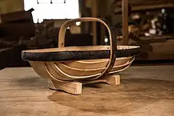 A Sussex trug is a wooden basket. It is made from a handle and rim of coppiced sweet chestnut wood which is hand-cleft then shaved using a drawknife. The body of the trug is made of five or seven thin boards of white willow, also hand-shaved with a drawknife.[1] They may have originated in Sussex because of the abundance of chestnut coppice and willows found on the marshes. Nails or pins used are usually copper, to avoid rust.