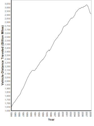 Car travel increased steadily throughout the twentieth century, but trends since 2000 have been more complex. Oil price rises from 2003 have been linked to a decline in per capita fuel use for private vehicle travel in the US,[90] Britain and Australia. In 2008, global oil consumption fell by 0.8% overall, with significant declines in consumption in North America, Western Europe, and parts of Asia.[91]