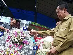 Jakarta was impacted by heavy flooding during Sutiyoso's term as governor, with particularly damaging ones in 2002, 2004, and 2007.[26] After the 2002 flood which killed 32 people,[27] Sutiyoso sent a request to the government of neighboring Bogor Regency to demolish a number of villas which blocked water infiltration in the Puncak area. Among the villas demolished was a 200-square meter villa belonging to Sutiyoso.[28][29] The 2007 flood had an even larger impact, affecting 60 percent of the city and killing 48 people in Jakarta. Sutiyoso was heavily criticized for his handling of the floods.[27][30]