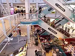 Sutton High Street began as a shopping street in Victorian times[8] and in 2014 was London's sixth most important retail centre, attracting shoppers from a wide area.[16] It is often the chosen location for new retail ventures.[17] Many of the country's main High Street names are represented in the central area,[18] as are banks, building societies and estate agents.