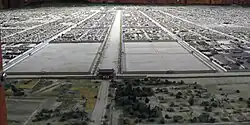 In Heian-kyō, present-day Kyoto, the Rajōmon (Rajōmon, Raseimon) was at the southern end of Suzaku Avenue, flanked on the east by the temple of Tō-ji, and on the west by the temple of Sai-ji, whilst at the northern end there was the main gate Suzakumon of Heian Palace. Of these, only Tō-ji remains.