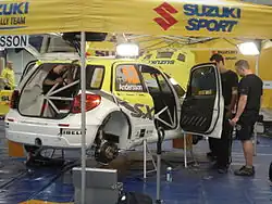 The Suzuki World Rally Team, also known as the Suzuki WRC Challenge, was Suzuki's factory backed World Rally Championship team, as part of the Suzuki Sport organization. The team debuted for the first time at the 2007 Tour de Corse in France.[4] After just one full season in 2008, in which the team finished fifth in the manufacturers' championship, Suzuki announced that they would be pulling out of the WRC.[5] The decision was attributed to falling car sales caused by the economic crisis, although reports had surfaced that Suzuki were ready to abandon its WRC program before the economic downturn began.[6]
