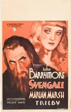 Svengali is a 1931 American pre-Code drama film directed by Archie Mayo.[2] The film stars John Barrymore and Marian Marsh. It is based on the 1894 George du Maurier novel Trilby and was among the many film adaptations of the book. The film was shot from January 12 to February 21, 1931. On its release in the United States, Svengali received some positive reviews but did not perform well at the box office.