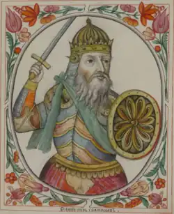 Sviatoslav or Svyatoslav I Igorevich (Old East Slavic: Свѧтославъ Игорєвичь, romanized: Svętoslavŭ Igorevičǐ;[1] Old Norse: Sveinald;[a] c. 943 – 972) was Prince of Kiev from 945 until his death in 972.[2][3] He is known for his persistent campaigns in the east and south, which precipitated the collapse of two great powers in Eastern Europe, Khazaria and the First Bulgarian Empire. He conquered numerous East Slavic tribes, defeated the Alans and attacked the Volga Bulgars,[4][5] and at times was allied with the Pechenegs and Magyars (Hungarians).
