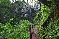 Svino stands on a terrace above the Idrija River. Svino Falls (Slovene: slap Svino) is located about 325 meters (1,066 ft) northeast of the village center on a small tributary of the Idrija River.