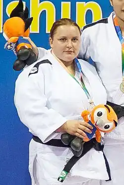 Svitlana Mykolayivna Iaromka (Ukrainian: Світлана Миколаївна Ярьомка, born 9 April 1989) is a Ukrainian judoka. She is the 2016 European silver medalist in the +78 kg division.[2] Iaromka repeated her success next year.