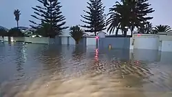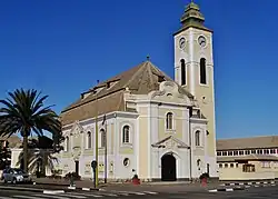 Swakopmund ('Mouth of the Swakop') is a city on the coast of western Namibia,[3] 352 km (219 mi) west of the Namibian capital Windhoek via the B2 main road. It is the capital of the Erongo administrative district. It has 25,047 inhabitants.[4]