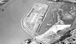 Oakley G. Kelly, the commanding officer at Pearson Airfield in Vancouver, Washington, was one of the first to seriously propose using Swan Island as an airfield.[1][2] In 1926, the Port of Portland, assisted by the United States Postal Service (USPS), organized a committee to look for a location for a new airport in Portland. The group chose Swan Island which was a peninsula along the Willamette River.[3] Objections over the airport started almost immediately, as postal workers who were using Pearson Airfield claimed Swan Island might flood. A plan was drawn up to raise the elevation of Swan Island to keep floodwater out.[4] W. L. Thompson spearheaded the commission and was the project's chief engineer. James H. Polhemus was the Port of Portland's general manager and chief engineer at the time.[5]
