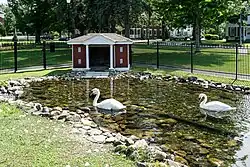 Before summer 2016, the swans died of old age.[9] After a gap of two years, a new set of swans (still named Sam and Betty) were secured and placed in their home in Village Green Park, surrounded by a black fence.[10] The new swans are not related to, or descended from, the originals, but they are still called the Royal Swans.[11]