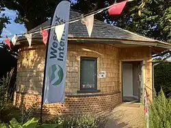 The outbuildings behind Forest Heath House, as it was renamed, were occupied by ArtSway and later by SPUDworks. SPUD is a registered charity working in the field of art education. They have engaged in a number of art projects throughout the New Forest, such as the Exbury Egg and an anti-litter sculpture.[29][30][31] SPUDWorks also built a studio, called The Living Room, in the gardens of Forest Heath House specifically for working with people with dementia.[32] SPUDWorks offers residencies, holds exhibitions and participates in events such as Hampshire Open Studios.[33][34] One of the artists resident at SPUDWorks is conceptual artist Bob Parks, described as "an interesting artist, a forgotten and peripheral figure from the Los Angeles Performance scene of the 1970s" and "a man who lives art".[35]