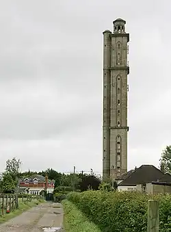 Built by Andrew Thomas Turton Peterson on his private estate from 1879–1885, both its design and the use of concrete as a building material were influenced by the follies Peterson had seen during his time in India.[23] Peterson—a proponent of spiritualism in his later life—also claimed to be guided by the spirit of Sir Christopher Wren in the building of the tower. It is constructed entirely out of concrete made with Portland cement, with only the windows having iron supports. It was the first major building in Britain to be built entirely from concrete,[24] and it remains the tallest non-reinforced concrete structure in the world.
