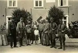 The party maintained close contacts with their German counterparts.[6] Furugård himself visited Germany on several occasions, and spoke at NSDAP election campaign meetings. He developed personal friendship links to key persons in the German party hierarchy, including Adolf Hitler.[1] The party used a swastika as its symbol.[7]