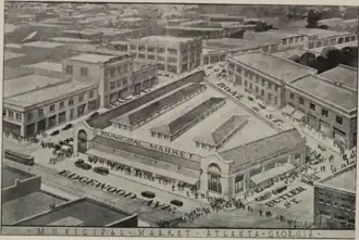 The market was originally established in 1918 on land cleared by the Great Atlanta fire of 1917. The farmers' market, set up in a huge tent, was an immediate success, bringing urban consumers direct access to farmers and their products.[1] Wishing to give the market a more permanent home, the Atlanta Woman's Club raised almost $300,000 for a fireproof brick and concrete building which opened on May 1, 1924,[1] named the Municipal Market of Atlanta. At the time, it was located in the exact geographic center of Atlanta and quickly became "the place to shop" for every Atlantan.[2] The market building was owned by the City of Atlanta and operated by a lessor under a 50-year agreement.[3]