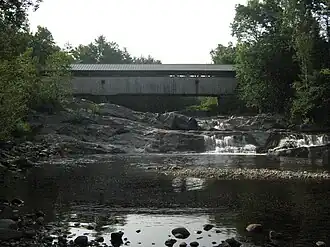The Swiftwater Covered Bridge is a historic covered bridge which carries Porter Road over the Wild Ammonoosuc River in Bath, New Hampshire. Built in 1849, it is one of New Hampshire's few surviving 19th-century covered bridges, and a well-preserved example of the Paddleford truss design. The bridge was added to the National Register of Historic Places in 1976.[1]