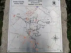 Swildon's Hole is an extensive cave in Priddy, Somerset. At 9,144 metres (30,000 ft) in length, it is the longest cave on the Mendip Hills.[2] It has been found to be connected to Priddy Green Sink and forms part of the Priddy Caves Site of Special Scientific Interest (SSSI).