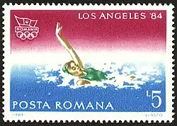 ![]() Romania stamp commemorating 1984 Olympic swimming | |||||||||||||