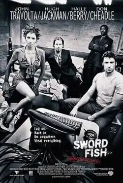 Swordfish is a 2001 American action thriller film directed by Dominic Sena, written by Skip Woods, produced by Joel Silver, and starring John Travolta, Hugh Jackman, Halle Berry, Don Cheadle, Vinnie Jones, and Sam Shepard.
