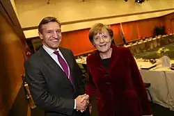 Sybrand van Haersma Buma (Dutch: [ˈsibrɑnt fɑn ˈɦaːrsmaː ˈbymaː],[a][b] West Frisian: [ˈsibrant fan ˈhɛrsma ˈbyma]; born 30 July 1965) is a Dutch politician serving as Mayor of Leeuwarden since 2019.[2] Until 2019, he was a member of the House of Representatives from 2002 who also served as the parliamentary leader of the Christian Democratic Appeal (CDA) from 2010 and as the leader of his party from 2012.[3]