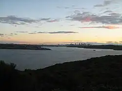 The heritage-listed[1] former Quarantine Station is located on North Head and is one of the few facilities that operated in each state of Australia from the mid-to-late-1800s until the 1980s. From 1828, Spring Cove, on the western side of North Head, was used to quarantine new arrivals to Sydney to minimise the spread of communicable diseases such as cholera, smallpox and whooping cough, amongst other communicable diseases. In 1832, the whole area of North Head was set aside for a quarantine station.[1] A permanent quarantine facility was set up in 1837 and continued to operate until 1984. The buildings and site was added to the New South Wales State Heritage Register on 2 April 1999,[2] the entire 277-hectare (680-acre) North Head site to the Australian National Heritage List on 12 May 2006,[1] and now forms part of the Sydney Harbour National Park.[3]